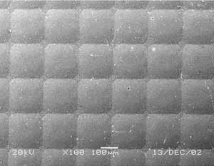然而利用这种技术制作的微透镜阵列也存在诸多缺点:一、由于光刻胶对于基板材料存在浸润现象,当光刻胶在熔融状态时与基板的附着力是一定的,那么当熔融光刻胶成型以后微透镜球面轮廓与基板之间存在浸润角,使微透镜的边缘存在一定的曲率,而中间部分下陷;二、一般情况下微透镜阵列的填充因子不会超过80%,而且光刻胶在熔化后容易粘连,相邻的熔融光刻胶一旦接触后,不会形成透镜的面形。由于填充因子不高,使入射的光不能充分利用,并且会引起背景噪声;三、由于光刻胶本身的机械性能和化学性能比较差,光学性能也不高,不适于作为微透镜或其他微结构的材料。